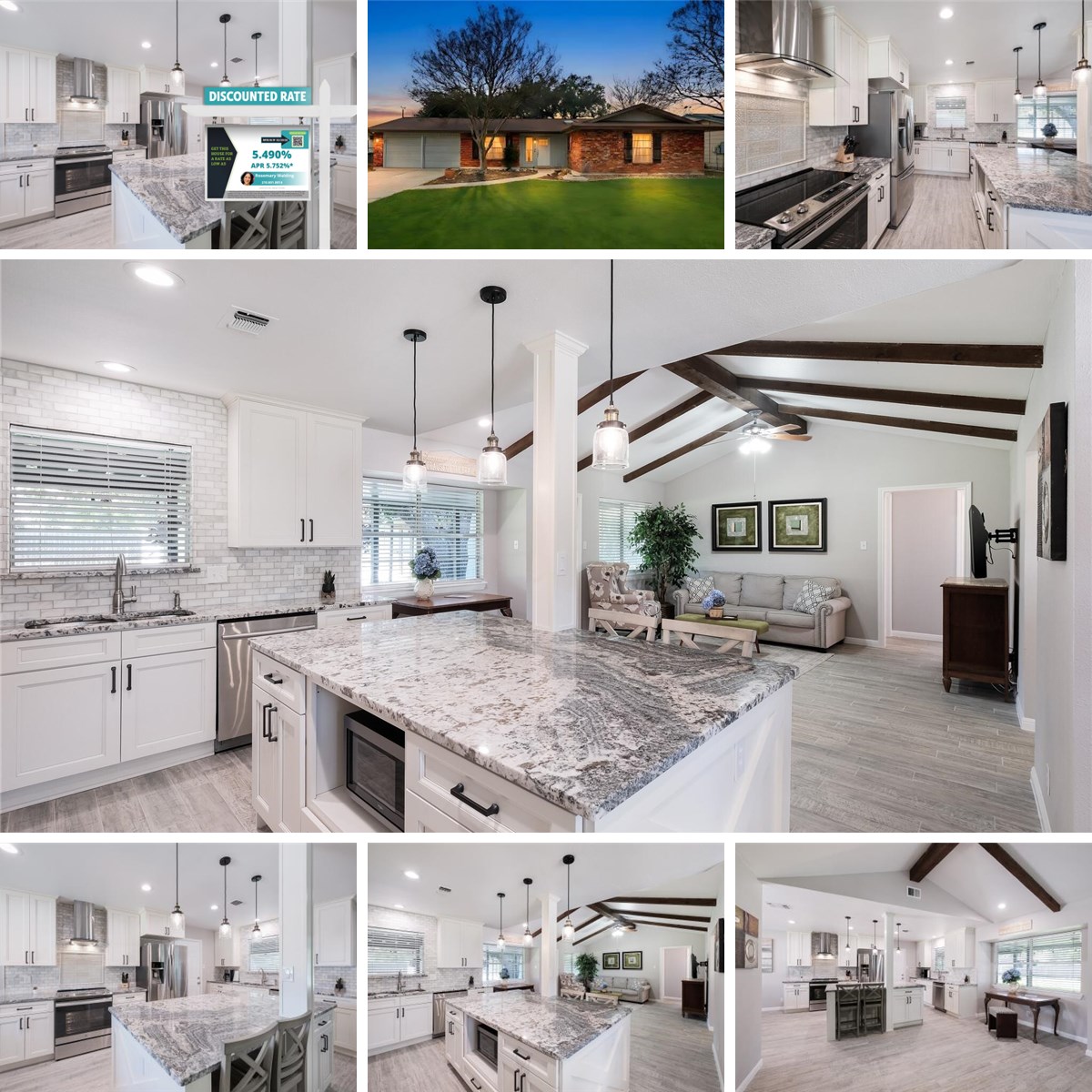 Wow! Great pride was taken with this charming home and its quality improvements and attention to detail. This remodeled home has an open concept kitchen and wooded beam ceiling in the living room that makes the home feel spacious. Fall in love in, with the solid-wood cabinets and a large granite island with seating that opens to living and dining room for a great space for entertainment. Stainless steel appliances and washer/dryer are included. Three comfortably sized bedrooms surrounding two nicely renovated bathrooms, including a creatively tiled shower. Enjoy the luxury of porcelain tile flooring and new interior panel doors. There's even a locked linen closet within the master closet which is a great place to secure valuables or Christmas presents for the kids. Imagine yourself sitting under the 37' x 10' covered patio enjoying the shaded yard while watching the kids play in the level fenced back yard. A walkway leads to a large 12' x 24' workshop/shed with electricity, ideal for great storage space and more. Conveniently centrally located in Leon Valley near Remus Park, two community pools, Medical Center, USAA, 12 miles to Lackland AFB and easy access to many essential amenities. Bring your best offer soon as this home will not last!